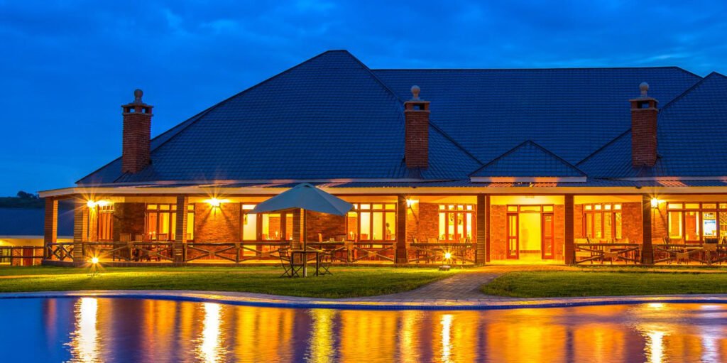 The lodge’s central facilities include a stylish reception and lounge area with both indoor and outdoor seating, a bar for refreshing drinks, and a dining room serving full board meals prepared from fresh local produce. Guests can enjoy the outdoor swimming pool, stroll along shaded garden paths, browse the on‑site gift shop, or stay connected via high‑speed Wi‑Fi in communal areas. Additional conveniences such as daily housekeeping, room service, laundry, secure 24‑hour reception, and easy payment options ensure a seamless and enjoyable stay for every guest.